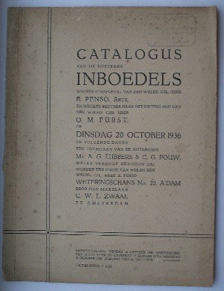 | Titel: | Catalogus van de kostbare inboedels wegens sterfgeval van (..) E. Penso, Arts, en (..) O.M. Furst (..). |