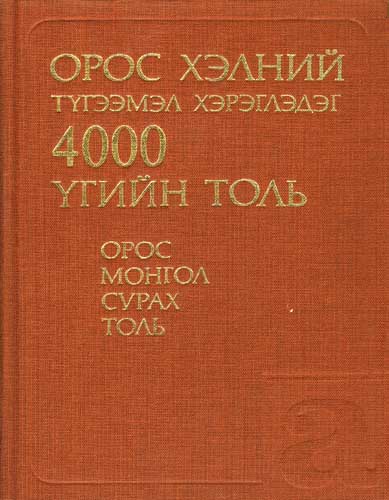 Nikolaj Maksimovic Sanskij Oros Xel: Moskva, 1982 Illustrated Mongolian Russian dictionary containing 4000 commonly used Russian words and meant for learning Russian as a second language in this case for Mongolian speakers. As appendix overviews of the names of fish, measure and weights, body parts and so on. Very useful. The structure of the book has been used for alike publications in many languages. |
