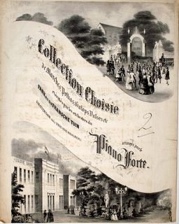 | Bijzonderheden: | 3 p. Muziek gegraveerd. Rand aan binnenkant met bruin papier versterkt., Lithogr. titelillustratie, o.a. met afb. 2 paardenkoetsen bij ingang Fransche tuin., Lithogr. titelillustratie, o.a. met afb. 2 paardenkoetsen bij ingang Fransche tuin. |