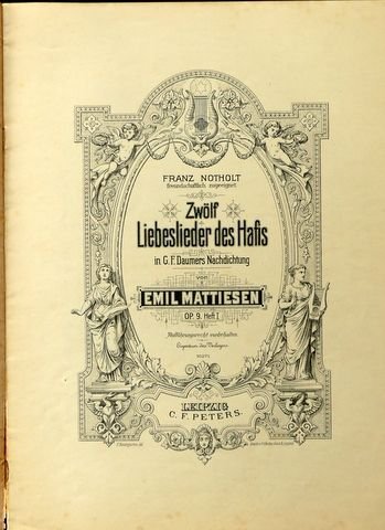 ![Mattiessen, Emil: - [Op. 9, no. 1-6] Zwölf Liebeslieder des Hafis in G.F. Daumers Nachdichtung... Op. 9. Heft I Mattiessen, Emil: - [Op. 9, no. 1-6] Zwölf Liebeslieder des Hafis in G.F. Daumers Nachdichtung... Op. 9. Heft I](https://images.boekwinkeltjes.nl/medium/g4fkOPAM8RQGWeo4obx1.jpg)