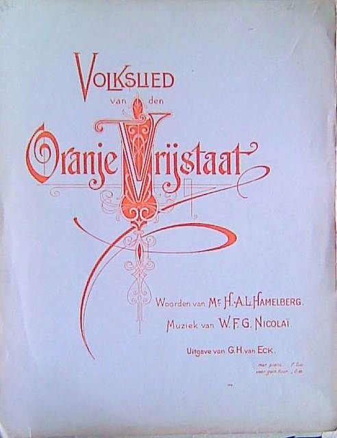 | Titel: | Volkslied van den Oranje Vrijstaat. Woorden van H.A.L. Hamelberg. Met piano |