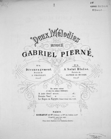Pierné, Gabriel: - Deux mélodies. No. 2. A Saint Blaise. Poési