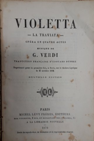 Verdi, Giuseppe: - [Libretto] Violetta... [La traviata]. Nouvel