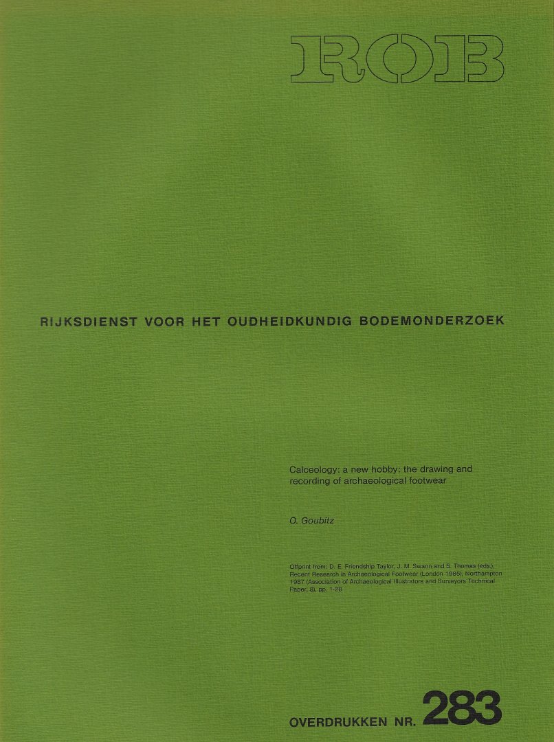 | Bijzonderheden: | 1987. With 35 text-figures. Wrappers. Pp. 1-28. (ROB Groene Overdrukken, 283)(Offprint from 'D.E. Friendship Taylor, J.M. Swann & S. Thomas (eds.). Recent Research in Archaeological Footwear'). |