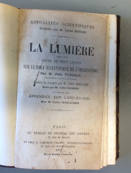 | Titel: | La Lumière. notes d'un cours de neuf leçons sur le role scientifique de l'imagination. |