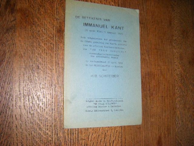 Schreiber, H. - De betekenis van Immanuel Kant. Rede uitgesprok
