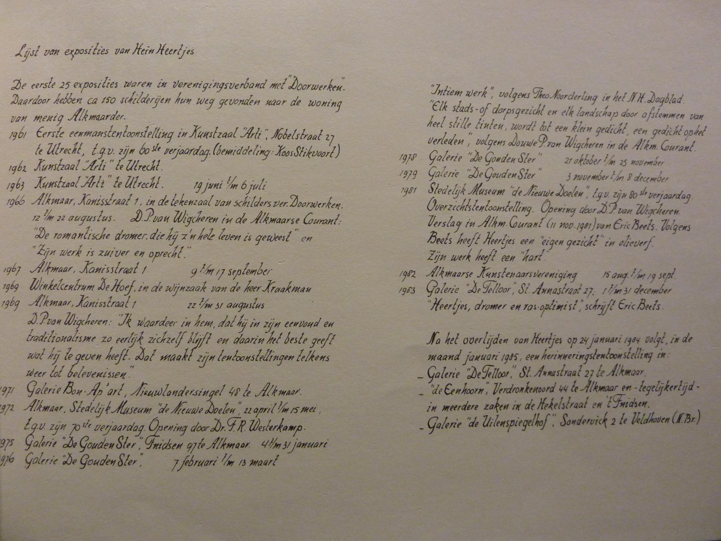 | Meer info: | Gegevens ontleend aan: artikelen uit het plakboek van Hein Heertjes, uit het boekje Schildersvereniging "Doorwerken", gesprekken met Hein Heertjes, Wim Koster en mevrouw Anna Langereis., Sticker van Galerie Le Pignon aan voorkant. |
