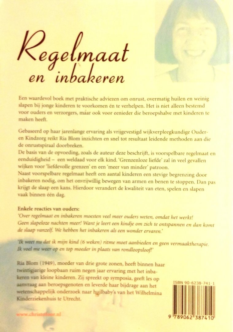 ![Blom , Ria . [ isbn 9789062387410 ] 0817 - Regelmaat en Inbakeren . ( Voorkomen en verhelpen van huilen en onrust. ) Een waardevol boek met praktische adviezen om onrust, overmatig huilen en weinig slapen bij jonge kinderen te voorkomen én te verhelpen. Het is niet alleen bestemd - Blom , Ria . [ isbn 9789062387410 ] 0817 - Regelmaat en Inbakeren . ( Voorkomen en verhelpen van huilen en onrust. ) Een waardevol boek met praktische adviezen om onrust, overmatig huilen en weinig slapen bij jonge kinderen te voorkomen én te verhelpen. Het is niet alleen bestemd -](https://images.boekwinkeltjes.nl/medium/V2dMbkaDVPKHP7Gc0i7v.jpg)