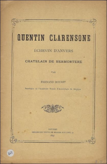 DONNET, Fernand. - QUENTIN CLARENSONE ECHEVIN D'ANVERS. CHATELA