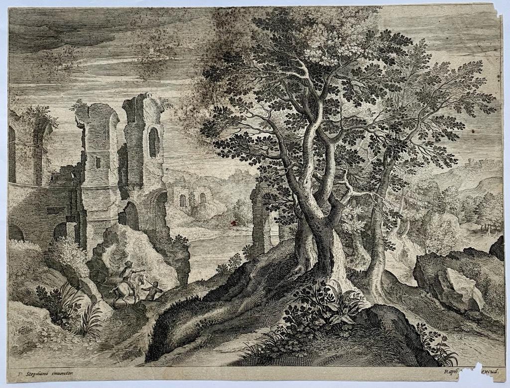 | Bijzonderheden: | Landscape with ruins, man on horse and shepherd.Signed on the bottom: 'P. Stephani inuentor'and on the right:'Raph [...] excud.' |