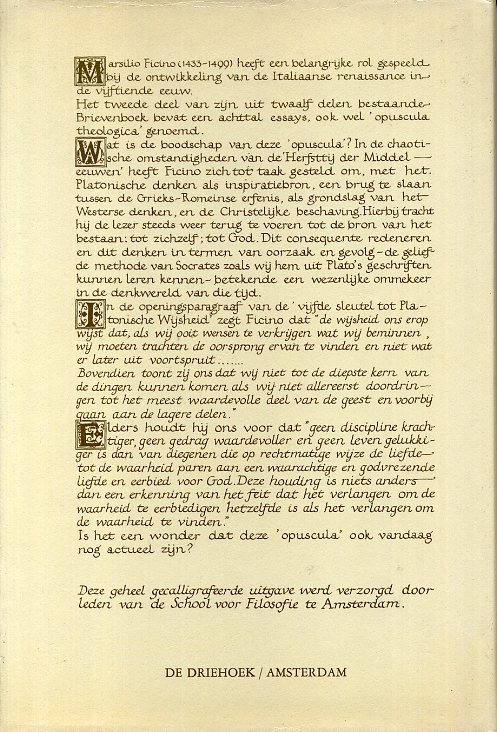 Ficino, Marcilio - Uit het brievenboek van Marsilio Ficino. Essays. Ficino, Marcilio - Uit het brievenboek van Marsilio Ficino. Essays.