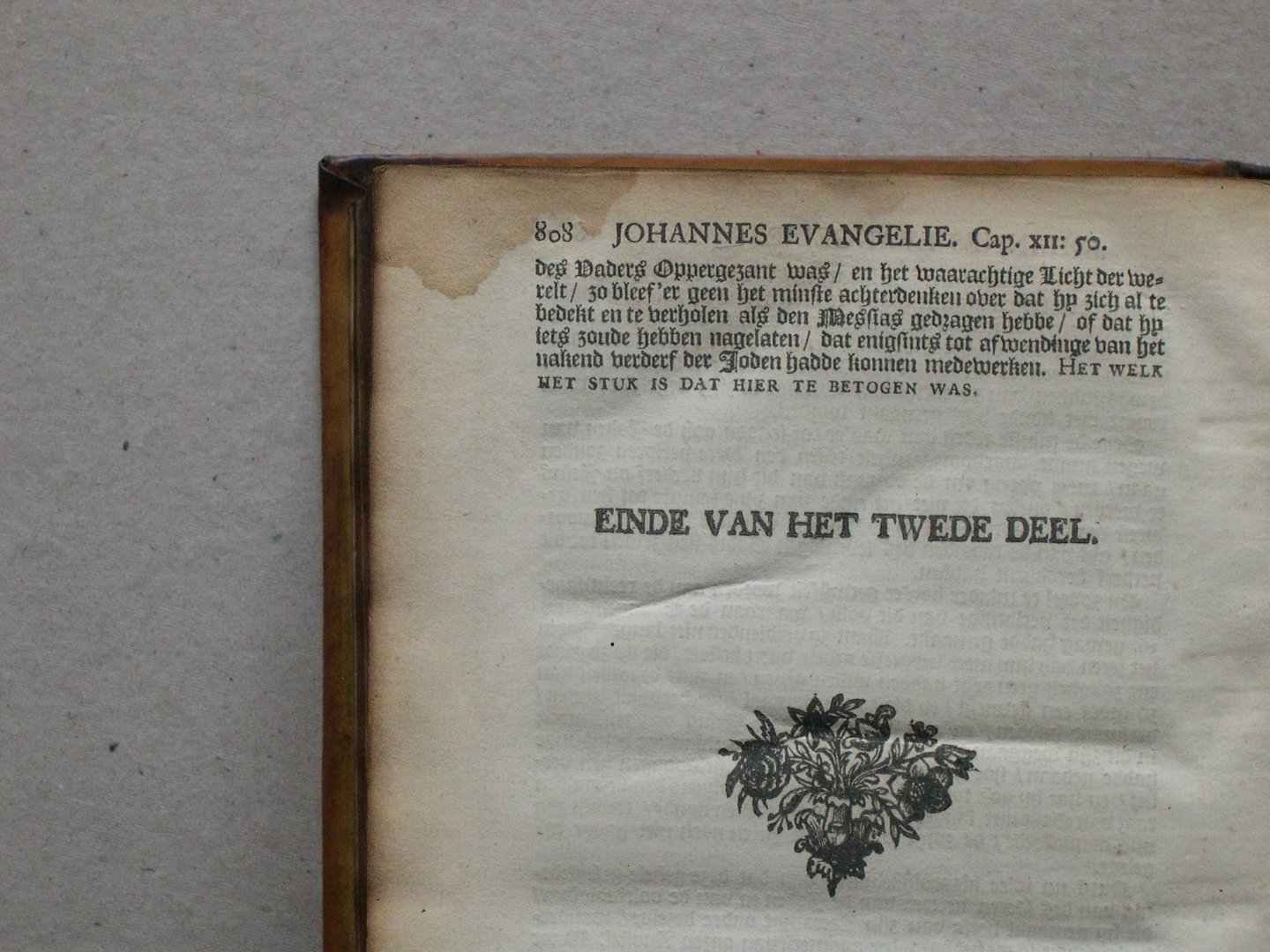 | Meer info: | Deel 1 en 2 van 3. Eerste deel tot blz. 74 en vanaf blz. 681 tot het einde vochtvlekken in de marge en in de tekst. Het tweede deel vanaf blz. 712 een vochtvlek in de marge. Voor het overige uitstekende exemplaren. |