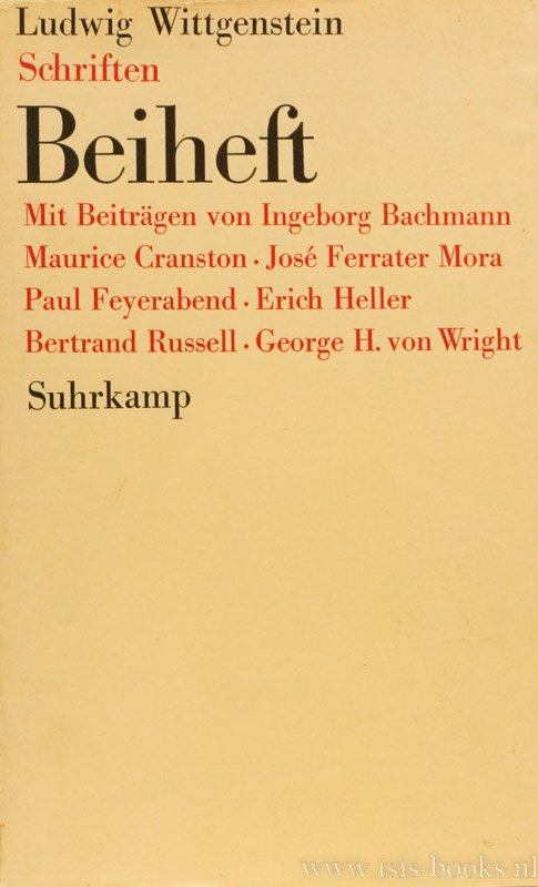 | Titel: | Schriften. Beiheft. Mit Beiträgen von Ingeborg Bachmann, Maurice Cranston, José Ferrater Mora, Paul Feyerabend, Erich Heller, Bertrand Russell, George H. von Wright. |
