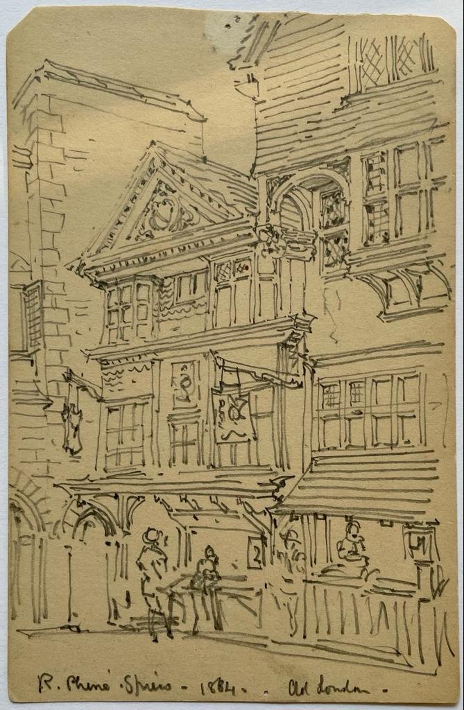 | Titel: | Antique Pencil Drawing 1884 - Old Londen - Signed and Dated - R.P. Spiers, 1 p. |