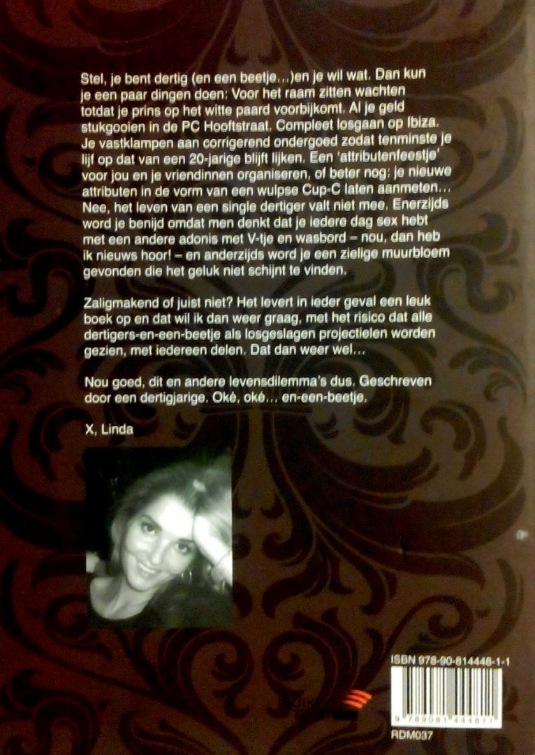 Nee, het leven van een single dertiger valt niet mee. Enerzijds wordt je benijd omdat men denkt dat je iedere dag sex hebt met een andere adonis met een V-tje en wasbord – nou, dan heb ik nieuws hoor! – en anderzijds word je een zielige muurbloem gevonden die het geluk niet schijnt. Zaligmakend of juist niet? Het levert in ieder geval een leuk boek op en dat wil ik dan weer graag, met het risico dat alle dertigers-en-een-beetje als losgeslagen projectielen worden gezien, met iedereen delen. Dat dan weer wel…. Nou goed, dit en andere levensdilemma's dus. Geschreven door een dertigjarige. Oke, Oke…en-een-beetje . |