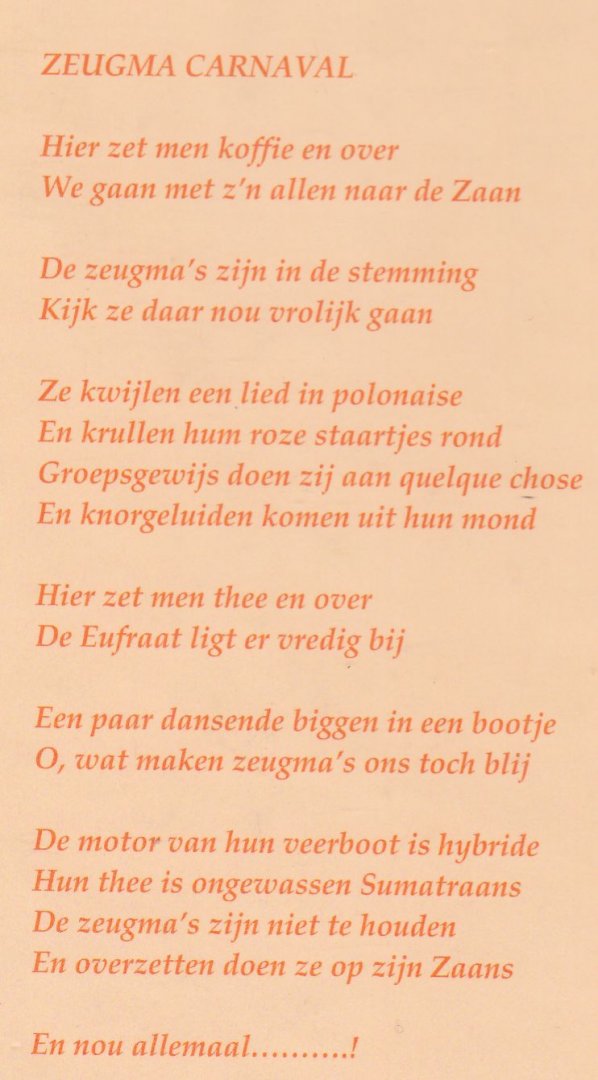 | Titel: | Hier zet men thee en over de Eufraat : zeugma, stijlfiguur met een krulstaartje |