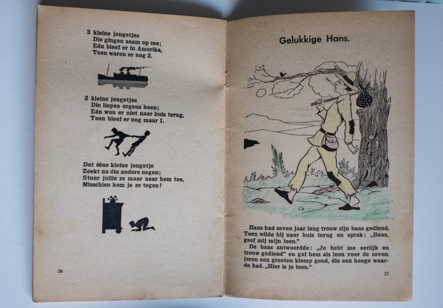 Geniet boekje met verhaaltjes, illustraties en spelletjes, Auteur: Pécé en Jan van Hengel (pseudoniem?). Geen uitgever of illustrator vermeld, maar uit andere bronnen: illustrator Netty Heyligers. Gedeeltelijk ingekleurd |