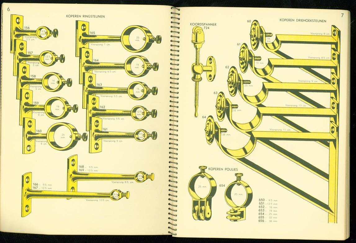 | Bijzonderheden: | c 1935, Als nieuw, spiral band - spiral bound ( metalen spiraal )., 106 Pagina's., rijk voorzien van foto's., Zeer divers assortiment dat een goed tijdsbeeld geeft. Gordijnroeden, traploperbevestiging., Garderobe materiaal, kapstokken paraplubak, ... |