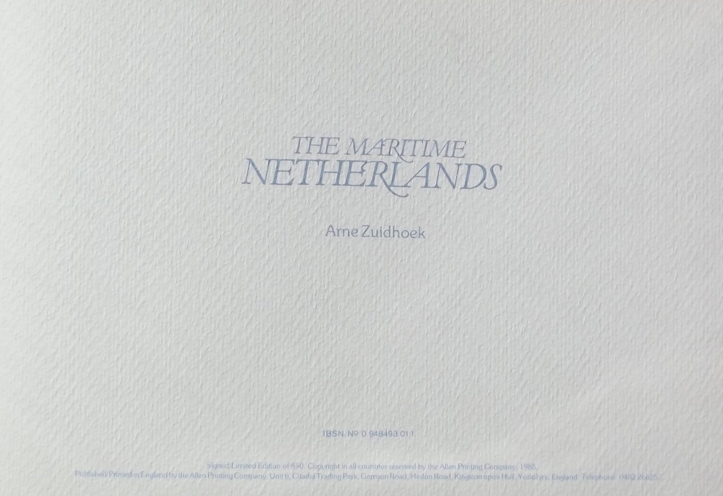 Bijzonderheden: 1985, 32 x 21.4 cm. Hardcover blauw leer met goudopdruk, ongepagineerd, kl. en zw/w. prenten, in goede staat.