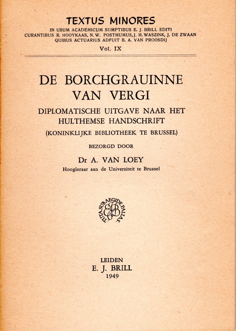 | Titel: | De Borchgrauinne van Vergi. Diplomatische uitgave naar het Hulthemse handschrift. |