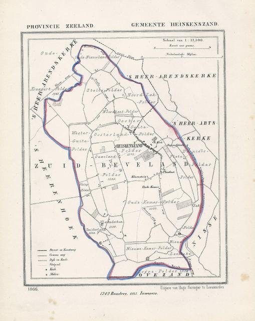 | Meer info: | J. Kuyper was één van de belangrijkste Nederlandse cartografen uit de tweede helft van de negentiende eeuw [Koeman II. p. 223]. Hij tekende in de jaren 1865-1875 kaarten van alle Nederlandse gemeenten en publiceerde die als atlas. - Enkele roestplekjes |