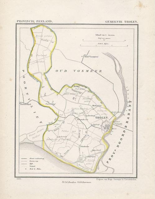 | Meer info: | J. Kuyper was één van de belangrijkste Nederlandse cartografen uit de tweede helft van de negentiende eeuw [Koeman II. p. 223]. Hij tekende in de jaren 1865-1875 kaarten van alle Nederlandse gemeenten en publiceerde die als atlas. - Enkele roestplekjes. |