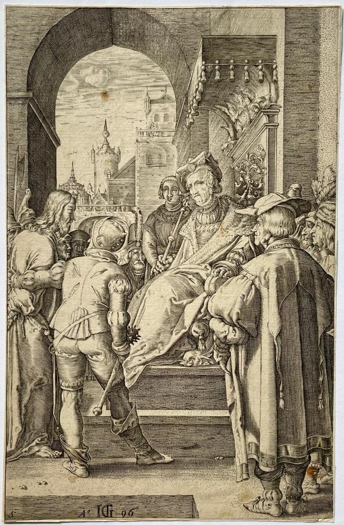 Engraving on paper, cut within plate mark, pasted on thicker paper; total: 196 x 127 mm; some stains; traces of previous mountings on verso; New Hollstein 21, copy b); Strauss 332; Bartsch 31. Pilatus - Oude Meester Prent - Hogenberg |
