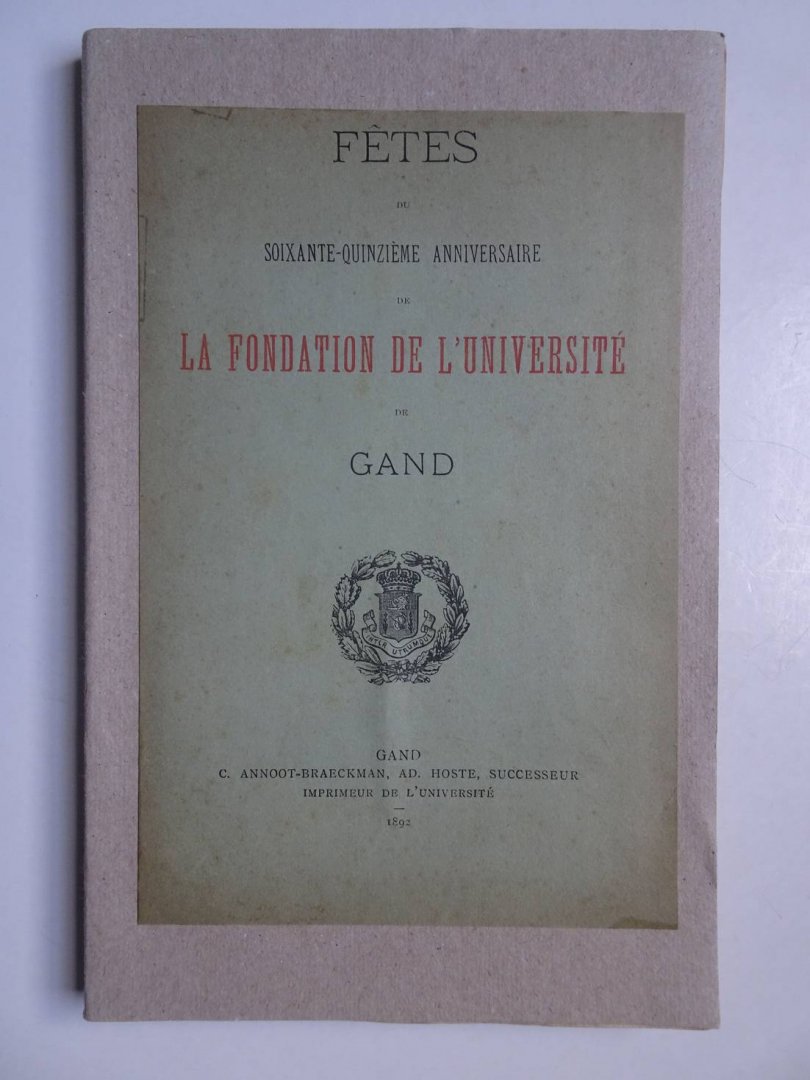 | Titel: | Fêtes du soixante-quinzième anniversaire de la fondation de l'Université de Gand. |