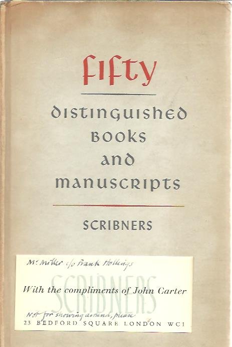 | Titel: | Fifty distinguished books and manuscripts. The Scribner Book Store. Catalogue 137. + Compliments slip of John Carter to Mr. Miller. |