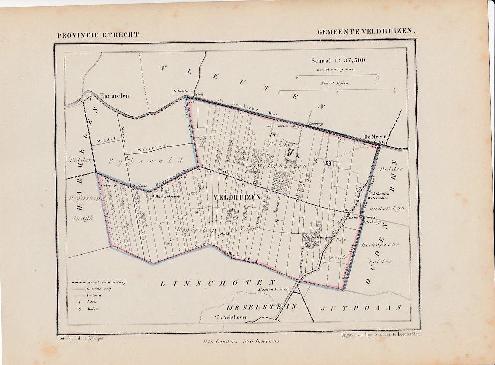 | Meer info: | J. Kuyper was één van de belangrijkste Nederlandse cartografen uit de tweede helft van de negentiende eeuw [Koeman II. p. 223]. Hij tekende in de jaren 1865-1875 kaarten van alle Nederlandse gemeenten en publiceerde die als atlas. - Enkele roestplekjes |