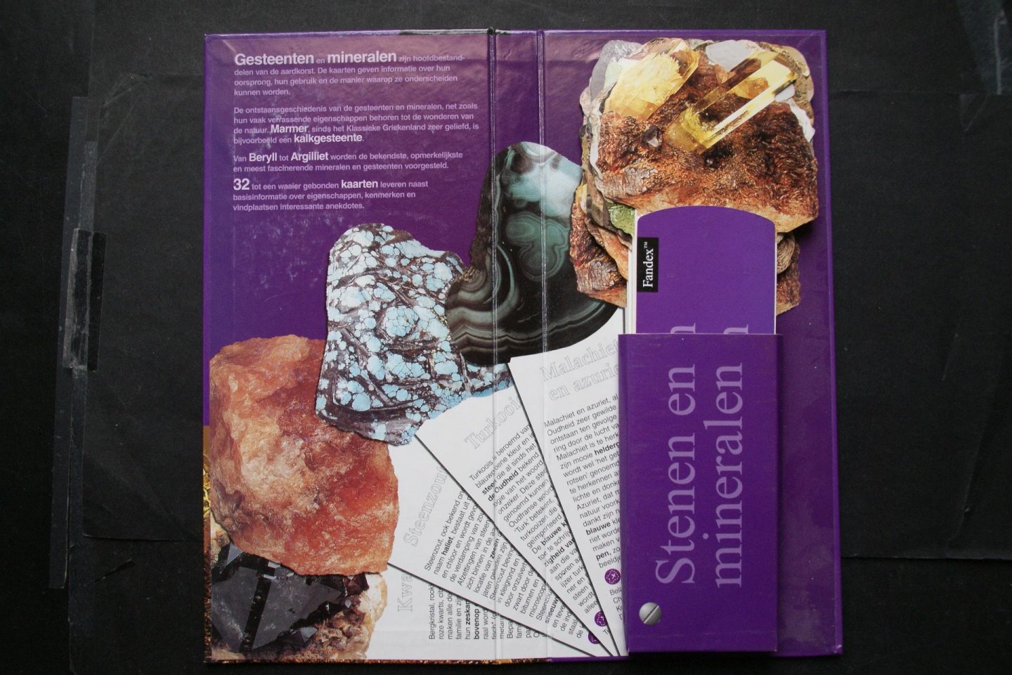 | Titel: | informatie over: Stenen en Mineralen vindplaats - ontstaan - eigenschappen 32 kaarten geven de informatie |