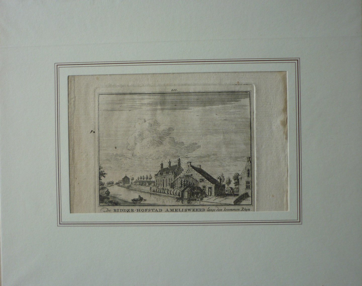 | Titel: | De Ridder-Hofstad Amelisweerd langs den krommen Rhyn. Originele kopergravure |