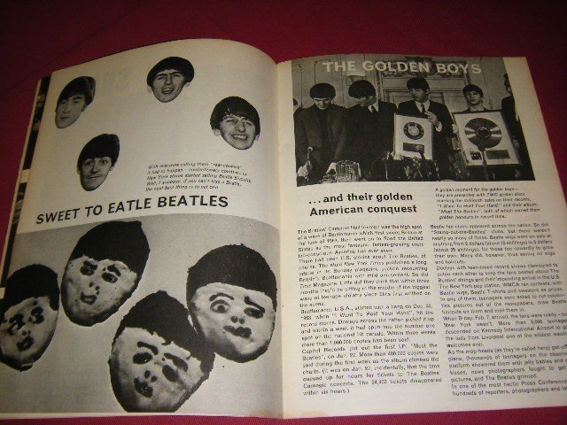| Bijzonderheden: | Softcover (geniet) in goede staat: vlek op voorplat en platten wat vergeeld. Fotoverslag van eerste optreden van de Beatles in Amerika. |