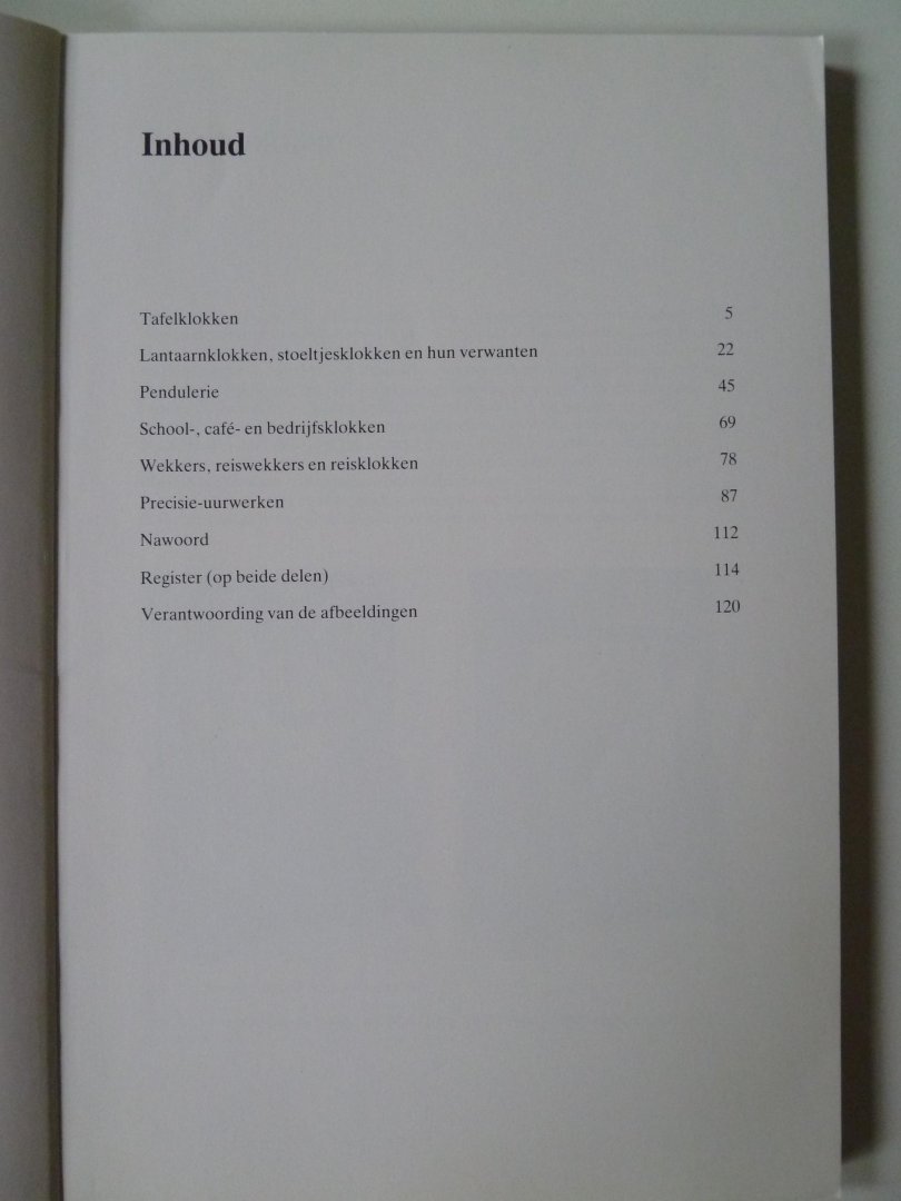 | Meer info: | Deel (II) Tafelklokken, Lantaarnklokken, Stoeltjesklokken, Pendules, Schoolklokken, Cafeklokken enz. Met veel zwart/wit foto's en afbeeldingen. |