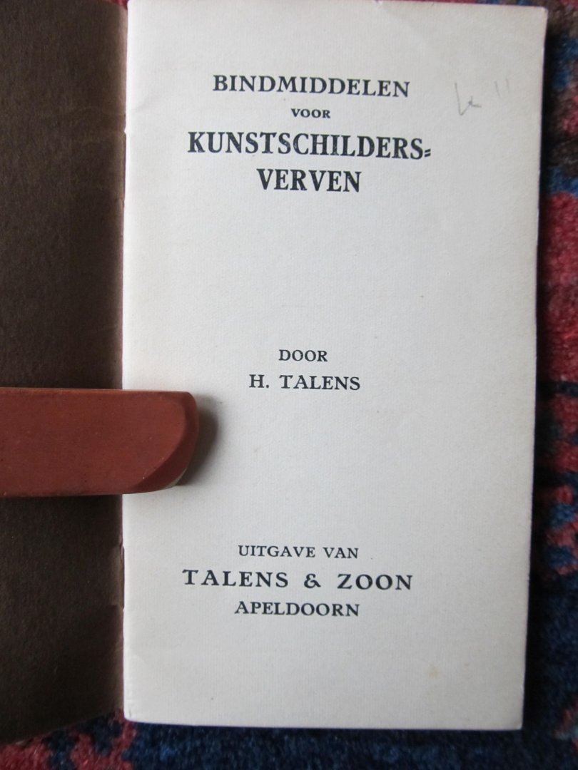 Talens, J. - BINDMIDDELEN VOOR KUNSTSCHILDERSVERVEN