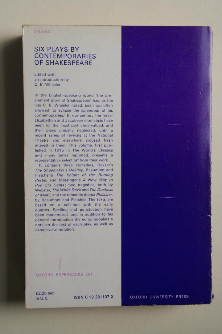 | Titel: | introduction by C.B.Weeler SIX PLAYS by Contempories Of Shakespeare |