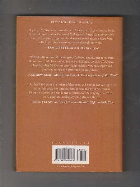 Duchess of nothing Bloomsbury, New York. 2006. First US edition. First printing. Hardcover. Octavo. Half black boards with brown spine with gold lettering. Deckled edges. With brown endpapers. With illustrated not price-clipped dustjacket. 215 pp. 15,25 x 21,25 x 2 cm. 386 gr. ISBN-10 1596910666. ISBN-13 9781596910669. Jacket illustration by David Eldridge / Two Associates. Author photograph by Lana Bernberg. The author of the startling, critically acclaimed first novel Schooling, which Newsweek called "moving, challenging, almost bewilderingly beautiful", returns with a darkly comic new novel, as impressive as her debut, about a mentally unpredictable woman intent on giving a young boy a proper education. After leaving her husband and her suffocating marriage for the romance and promise of Rome, the narrator of Duchess of Nothing has her freedom but is still trapped by the routine of life and haunted by her past. Her one source of entertainment is her lover Edmund's seven-year-old brother, a curious and defiant child who becomes her responsibility during her lover's long absences. Spending their days together, they wander the city, simultaneously repelled by and drawn to each other as she teaches him important lessons he would otherwise never learn in school. But when Edmund abandons them altogether, the amusing relationship between the narrator and her charge suddenly becomes a necessity, and she realizes how much she has come to depend on the boy. Charming, manic, and acutely aware of her own precarious grasp on the world around her, the narrator of McGowan's novel speaks with a kind of absurd logic that makes this book impossible to put down. Text clean and unmarked. Fine hardcover book in fine dustjacket. BOOKNUMBER: 20271 |
