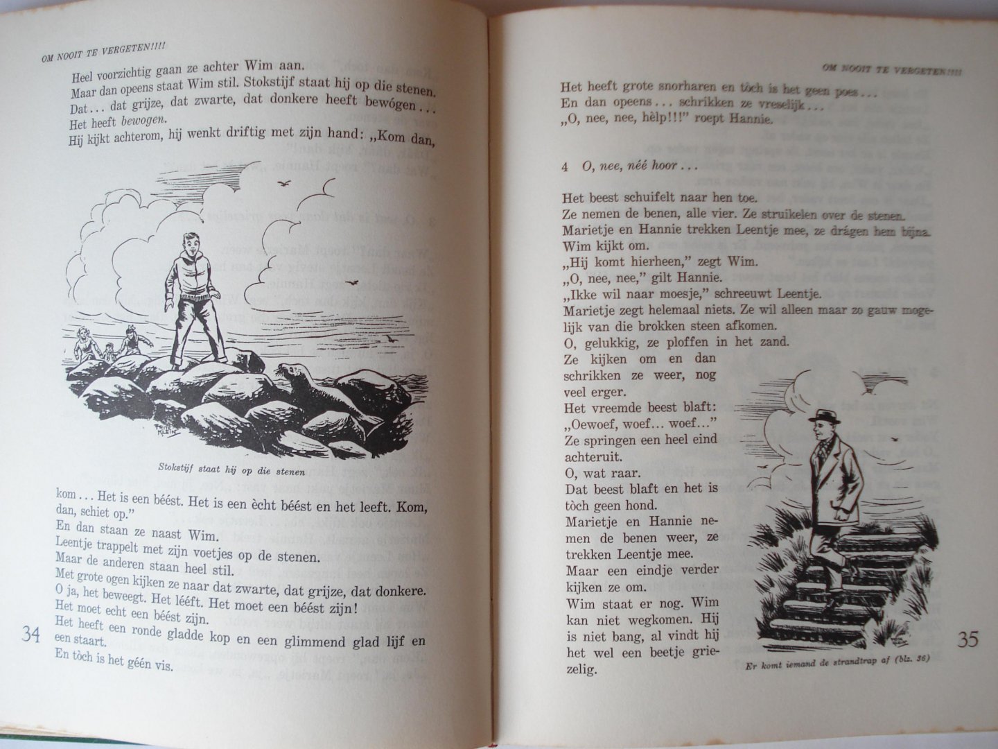 | Meer info: | Gebruikssporen. Lichte slijtage langs de randen van de kaft. Nogal wat roestvlekken op het boekblok en een beetje langs de randen van de bladzijden. Notitie op schutblad. Tekeningen van Frits Klein. Negentien verhalen. |