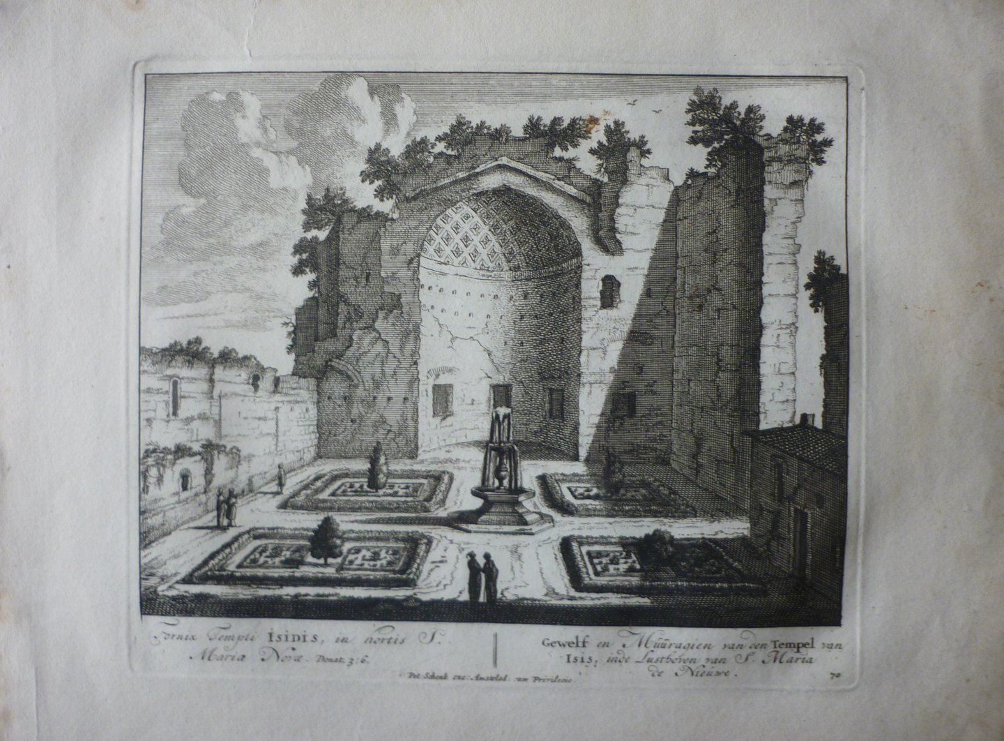 | Titel: | Gewelf en Muuragien van den Tempel van Isis inde Lusthoven van S. Maria de Nieuwe 70. Originele kopergravure. |