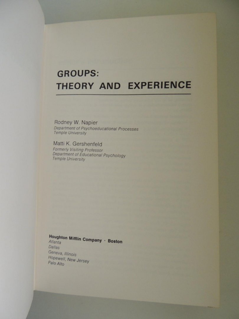 Napier, Rodney W., Gershenfeld - Groups - Theory and Experience