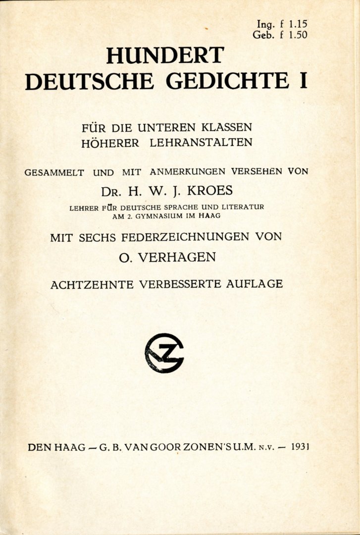 Kroes, H.W.J. - Hundert Deutsche Gedichte I