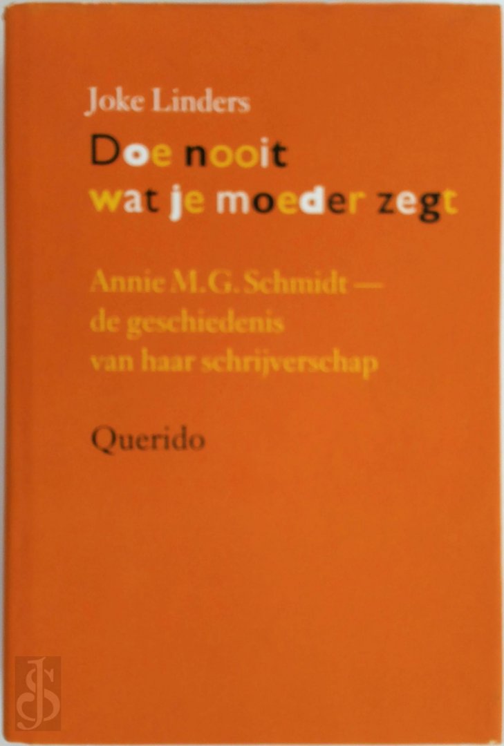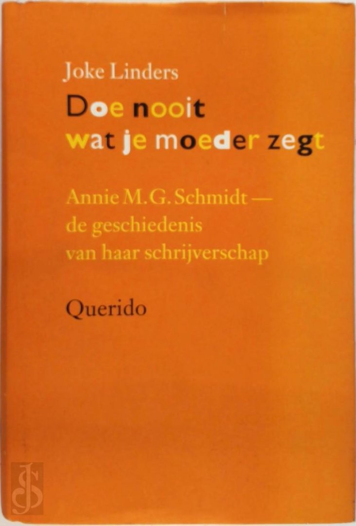 Zeker drie generaties groeiden op met Jip en Janneke, Het fluitketeltje en Pluk van de Petteflet. Niet minder roem vergaarde Annie M.G. Schmidt met haar werk voor krant (Het parool), radio (De familie Doorsnee) en televisie (Pension Hommeles). Legendarisch zijn haar bijdragen aan het Nederlandse cabaret en de musical. In haar eentje heeft Annie M.G. Schmidt de scheidsmuren tussen de verschillende media en genres, tussen de hoge en de lage cultuur weten te slechten. In het uiterst toegankelijk geschreven Doe nooit wat je moeder zegt schetst Joke Linders een beeld van het veelzijdige oeuvre van Annie M.G. Schmidt.