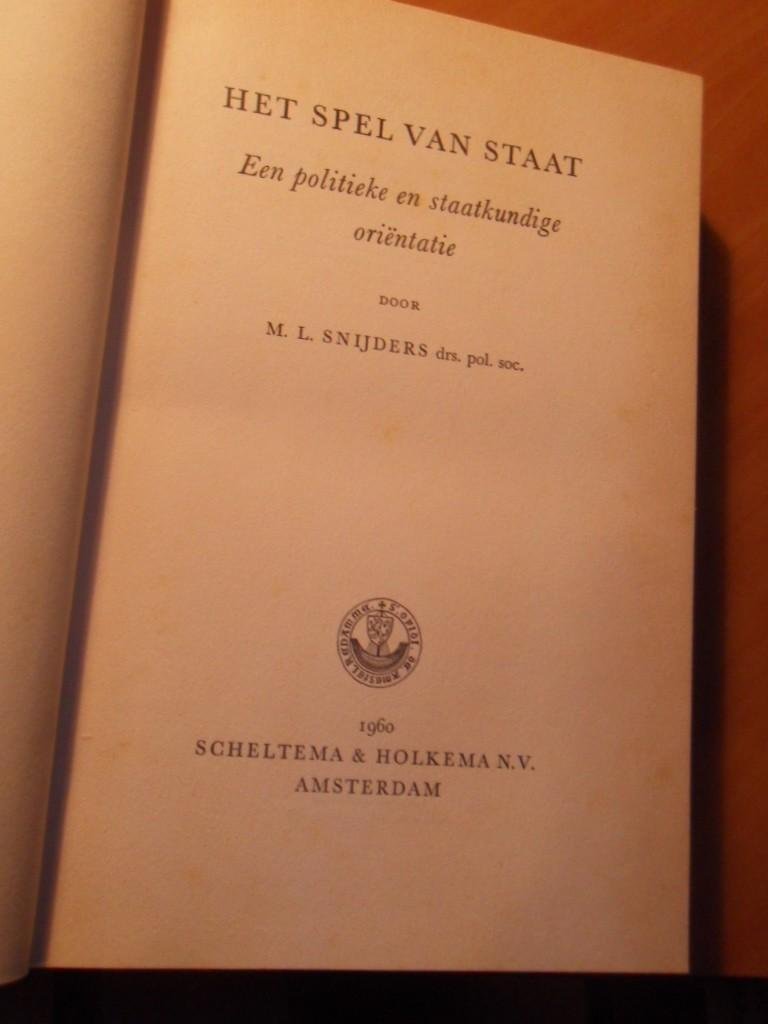 Snijders, M.L. - Het spel van staat. Een politieke en staatkund
