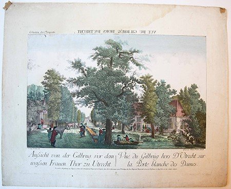 | Bijzonderheden: | ca. 1760-1800 400 x 495 mm (plate: 315 x 423 mm) Etching/watercolour Vuë du Gilbrúg hors d'Utrecht. Collection des Prospects. Aussicht von der Gilbrug, vor dem weissen Frauen Thor zu Utrecht. Vuë du Gilbrúg hors D'Utrecht sur la Porte blanche ... |