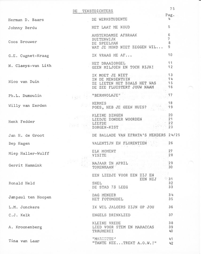 | Bijzonderheden: | 1970?. 70 teksten van componisten. Voor uitleg zie de foto's. Wil je weten of jij er ook in staat? Stuur een mail. |