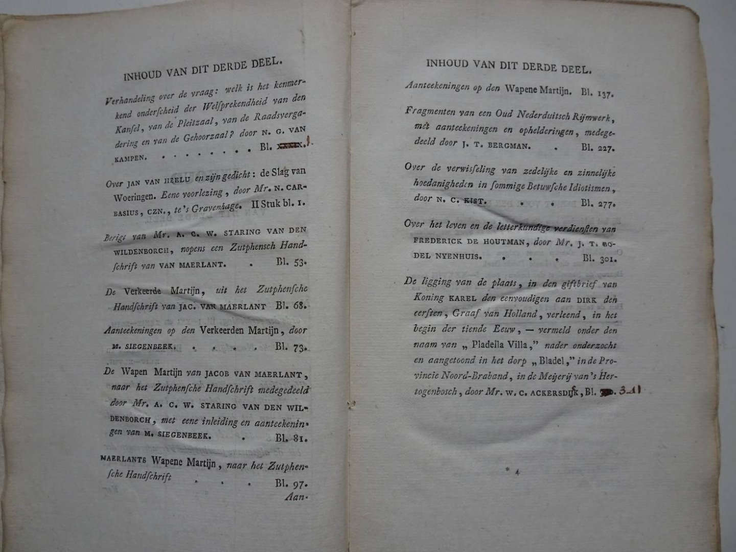 | Titel: | Nieuwe werken van de Maatschappij der Nederlandsche Letterkunde te Leiden. III Deel, II stuk. Bevattende o.a. "Over Jan van Heelu en zijn gedicht "De Slag van Woeringen", "De Wapen Martijn", van Jacob van Maerlant, "Over de verwisseling van ze... |