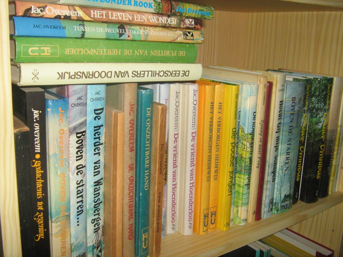 Jacob Overeem. Het Schrijvend hart van de Veluwe. Samenstelling Brand Overeem e.a. OVER ZIJN LEVEN en WERK, 112 pag. met vele verhalen en meerdere foto's, € 10,00 Het Verborgen Heimwee, 1e druk, 1975. Uitgeverij Den Hertog, Utrecht. 215 pag. Hardcover. € 6,00. Kerstfeest in de Schaapskooi, een verhaal uit Normandië. Uitgeverij Kool, Veenendaal. 1977 Hardcover. 160 pag. € 5,00. Die Poolse jongen, Het verhaal van Mika Tomkiewis. Met illustraties van G.A. den Ouden, 1978. Uitgeverij Den Hertog, Utrecht. 138 pag. Hardcover. € 4,00. Sterren in de Nacht. B.V. Uitgeverij De Banier, Utrecht. 92 pag. Softcover. Jaar van uitgave onbekend. € 2,00 Sterren in de Nacht, gekartonneerde band, rood met blauw 110 pag. +/- 1950. € 5,00 Sterren in de Nacht, gekartonneerde band, geel met blauw 110 pag. +/- 1950. € 5,00 De Kleine Zwerver. 3e druk. Uitgeverij Den Hertog, Houten. 2001. 63 pag. € 3,00 Willy en het Hertejong. 116 pag. paperback. € 3,50 Jesse van Klein-Immenstein. Uitgave W.J. Reijnders, Hierden/Harderwijk. 1975 Met illustraties van Ruud van der Hoofd. 120 pag. € 4,25 Matild en de Verloren Zoon. 1e druk, 1970. Uitgave van Stichting Protestantse Periodieke Pers, Uithoorn. 108 pag. Hardcover. Jaar van uitgave onbekend.€ 4,50 Matild en de Verloren Zoon. Den Hertog Uitgeverij. 107 pag. Hardcover. Jaar van uitgave onbekend.€ 4,50 Zwitsers Elsje. Uitgevrij W.J. Pieters, Oostburg. 1e druk, 1972. 114 pag. Hardcover. Van de Kleine en de Grote dingen. Prentkunst, verhalen en gedichten van Robert Doornekamp en Jac. Overeem. Bij de Barneveldse drukkerij en uitgeverij b.v., Barneveld. 104 pag. 1973 Softcover. € 2,50 Moeders Bijbel, een oud verhaal, opnieuw verteld. Uitgeverij Boekhandel Gebr. Koster, Barneveld. Hardcover. 160 pag. 1e druk, 1989. € 5,00. Moeders Bijbel, een oud verhaal, opnieuw verteld. Uitgeverij Boekhandel Gebr. Koster, Barneveld. Hardcover. 160 pag. 3e druk, 1993. € 5,00. De Kleine Bultenaar. Banierpocket. Uitgeverij De Banier, Utrecht, 1978. 126 pag. € 2,75 Siem de Lavier. Trilogie ( De Kleine Bultenaar/Siem de Lavier/De Koordirigent). Uitgeverij De Banier, Utrecht, 1988. 244 pag. NIEUW! € 7,50 Siem de Lavier. Paperback. Uitgeverij De Banier, Utrecht, Jaar van uitgave onbekend. 126 pag. € 2,00 Onesimus en de Architect van Rome. Paperback, opnieuw bewerkt door de auteur. Uitgeverij De Banier, Utrecht 96 pag. Zonder jaartal. €2,00 Als de zomerwind waait. Banierpocket. Uitgeverij De Banier, Utrecht. Zonder jaartal. 93 pag. €2,00 Storm en Stilte om de Deelerhof. Uitgeverij Boekzaal Bogerman, Barneveld. Paperback met 333 pag. Zonder jaartal. €9,00 Palmi en haar Tuin. Den Hertog Uitgeverij b.v., Utrecht. 1e druk, 1979. 135 pag. € 6,00 De Oude Frank en zijn Kleine Vriend. Den Hertog, Uitgeverij b.v., Utrecht. 1e druk, 1976. In linnen gebonden hardcover. € 4,50 De Zoon van het Veluweland Vroeger verschenen onder de Titel: De weg naar het Leven Open. Den Hertog Uitgeverij b.v., Utrecht. 2e druk. 157 pag. Jaar van uitgave onbekend. Hardcover. € 4.50 Piet van Stormveld. Banierpocket uit 1959. N.V. Drukkerij-Uitgeverij De Banier,Vianen. 99 pag. Softcover. € 4,25 De Oude Klompenmaker. Den Hertog Uitgeverij, Utrecht. 1e druk, 1965. 103 pag. Softcover. € 4,50 Sjonny en haar Pony. N.V. Drukkerij-Uitgeverij De Banier, Utrecht. 1e druk, 1970. 93 pag. Hardcover. € 4,75 . De Puritein van de Hertenpolder, Van een Veluwse jongen die boer werd in de Zuid-Hollandse Polder. Uitgeverij Den Hertog, Utrecht. Hardcover. 248 pag. € 5,00 De Eekschillers van Doornspijk, Verhaal van de Veluwe rond de eeuwwisseling. Uitgeverij Den Hertog, Utrecht. 1979 Hardcover. 240 pag. € 6,50 Het Verborgen Heimwee, Uitgeverij Den Hertog, Utrecht. Hardcover. 215 pag. € 5,00 Het Verborgen Heimwee, Uitgeverij Den Hertog, Utrecht. Hardcover. 1e druk, 1975. 215 pag. € 6,00 De man met de Geuzenkop, Eerste deel. Uitgeverij W.J. Reijnders, Hierden-Harderwijk. Hardcover. 195 pag. €4,00 Tussen de heuvels, daar wonen zij, Uitgeverij Kool, Veenendaal, 1987. 143 pag. hardcover. €4,50 Boven de Starren, een verhaal aan de hand van oude familiepapieren. Uitgeverij Kool B.V., Veenendaal. 210 pag. Druk en jaar van uitgave onbekend. In linnen gebonden hardcover. € 6,00 Boven de Starren, een verhaal aan de hand van oude familiepapieren. Uitgeverij W.J. Reijnders, Hierden/Harderwijk.. 210 pag. 1975. Druk onbekend. Hardcover. € 6,50 De Kapelaan van Garderen, Uitgeverij Boekhandel Gebr. Koster, Barneveld. Hardcover. 206 pag. 3e herziene en uitgebreide druk € 5,00. De Herder van Warnsbergen. Uitgeverij Kool B.V., Veenendaal. 244 pag. Druk en jaar van uitgave onbekend. In linnen gebonden hardcover. € 6,00 Hoedt Gij mijn Schapen. Uitgeverij Kool B.V., Veenendaal. 227 pag. Druk en jaar van uitgave onbekend. In linnen gebonden hardcover. € 6,00 Slagschaduw over een Veluws Dorp. Een volksverhaal waarin verwerkt is de tragedie van Putten 1944. Uitgeverij Koster, Barneveld. Linnen gebonden hardcover met 209 pag. €9,00 De koejongen van Elspeet, een verhaal van de Veluwe omstreeks 1920. 1e druk. Den Hertog Uitgeverij B.V., Utrecht. 213 pag. 1978 Ilustraties van H. Terlouw. In linnen gebonden hardcover. € 6,50 De koejongen van Elspeet, een verhaal van de Veluwe omstreeks 1920. 2e druk. Den Hertog Uitgeverij B.V., Utrecht. 213 pag. 1981 Ilustraties van H. Terlouw. In linnen gebonden hardcover. € 6,50 Het Licht in de Schaapskooi, Een verhaal uit Normandie. 2e druk, Uitgeverij Den Hertog, Houten. 1997. 134 pag. In linnen gebonden hardcover. € 6,50 Het Leven een Wonder. 2e druk, hardcover. 111 pag. J.P. vd Tol Uitgever, Dordrecht. €6,00 Het Leven een Wonder. hardcover. 100 pag. Uitgeverij Kool B.V., Veenendaal. 1986 €3,50 De Vriend van Hoenderloo, Het levensverhaal van Ds. Otto Gerhard Heldring. Den Hertog Uitgeverij b.v., Houten. 1983. 156 pag. Met pen geschreven felicitatie op eerste pagina. In linnen gebonden hardcover. € 9,00 De Pastoor van Garderen (Anastasius Veluanus). De Hervor