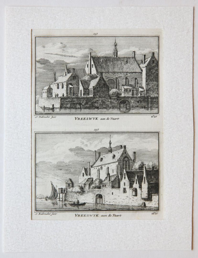 | Bijzonderheden: | Two copperplate etchings of 'Vreeswijk aan de Vaart', in the Dutch province of Utrecht, as it appeared in 1620. Drawn and etched by A. Rademaker. This print was part of the book 'Kabinet van Nederlandsche en Kleefsche Oudheden (...), Amsterdam, is... |