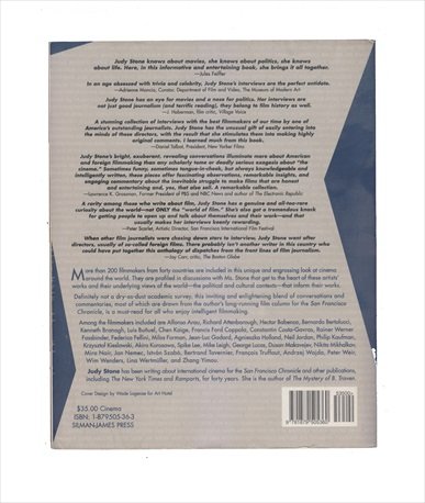 Eye on the world. Conversations with international filmmakers. Silman-James Press, Los Angeles. 1997. First edition. First printing. Paperback. Softcover. 826 pages. 20,5 x 25,5 x 5 cm. 1692 gr. Cover design by Wade Lageose, Art Hotel. ISBN-10 1-879505-36-3. ISBN-13 978-1-879505-36-0. With black and white illustrations. More than 200 filmmakers from forty countries are included in this unique and engrossing look at cinema around the world. They are profiled in discussions with Ms. Stone that get to the heart of these artists' works and their underlying views of the world - the political and cultural contexts - that inform their works. Definitely not a dry-as-dust academic survey, this inviting and enlightening blend of conversations and commentaries, most of which are drawn from the author's long-running film column for the San Francisco Chronicle, is a must-read for all who enjoy intelligent filmmaking. "...her subjects are never dull and their conversations make the perfect complement to all those Halliwell types of reference." - Glasgow Herald "...reflects Stone's best assets as a reporter: a strong sense of social responsibility and a lack of prudery... that allowed her to see the quality of raw films such as Jean-Claude Lauzon's surreal story of an insane Montreal family or Dusan Makavejev's 1974 scatalogical 'Sweet Movie.' " - Richard von Busack, Sonoma County Independent "Among the pleasures of this browser's delight and movie buff's reference trove are Stone's informative approach to her subjects, her brisk refusal to put on airs and her ability to make the ouevre of an obscure Tunisian filmmaker sound as exciting and accessible as the art-house triumphs of a Franois Truffaut or Robert Altman. She neither fawns over her subjects nor bludgeons them, but serves as a 'bridge between the filmmaker and the audience.' " - Misha Berson, San Francisco Chronicle. "It is extraordinarily insightful. A must for cinephiles and cineastes as well." - Bill Brownstein, Montreal Gazette. "It's a very browsable book and I browsed in it extensively. Stone (sister of the late I.F.) is informed, sympathetic and though she doesn't force, never misses the social-political aspects, if any, of a subject's work." - Stanley Kaufmann, The New Republic "Its pleasures and surprises are many for the aspiring experts and casual film fans alike." - Martha Legace, Prague Post "Judy Stone's own comments on the individual directors and films, and the filmmaking process, are equally illuminating. She combines an acute knowledge of film history and politics with a simple but direct writing style, resulting in a book that serves as a refreshing reminder that not all movies are 'product,' and plenty of filmmakers practice their art in order to make audiences think and feel." - Rob Edelman, WAMC, Amsterdam, NY "Our 'Book of the Year'... (She) brings a maverick Bay Area intelligence to bear on her subjects. Under her sympathetic scrutiny, they divulge personal thoughts and hang-ups rarely found elsewhere." - Variety's International Film Guide "Stone can take more credit for San Francisco's reputation as a town of savvy, adventurous moviegoers than any other member of the fourth estate." - Michael Fox, 1997 San Francisco International Film Festival catalogue. "What a welcome antidote to gooey celebrity interviews."- - Gerald Peary, Boston Phoenix "When you come across a book such as this, the happy surprise is to find yourself saying: 'Here's a book I could really use.' " - Liam Lacey, Toronto Globe and Mail. Eye On The World: Conversations With International Filmmakers profiles more than 200 filmmakers from forty countries in this unique and engaging look at cinema around the world. Author Judy Stone gets to the heart of these film artists' work and their underlying views of the world (the political and cultural contexts) that inform their works. No mere academic survey, Eye On The World is an inviting and enlightening blend of conversations and commentaries, most of which are drawn from Stone's long-running film column for the San Francisco Chronicle. Eye On The World is a highly recommended acquisition for all film school, professional, and personal cinema reference book collections. - Midwest Book Review Near mint copy with no stamps or inscriptions. As new. BOOKNUMBER: 21014 |