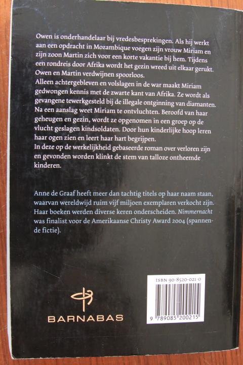 Owen is onderhandelaar bij vredesbesprekingen. Als hij werkt aan een opdracht in Mozambique voegen zijn vrouw Miriam en zijn zoon Martin zich voor een korte vakantie bij hem. Tijdens een rondreis door Afrika wordt het gezin wreed uit elkaar gerukt. Owen en Martin verdwijnen spoorloos. Alleen achtergebleven en volledig in de war maakt Miriam gedwongen kennis met de zwarte kant van Afrika. Ze wordt als gevangene tewerkgesteld bij de illegale ontginning van diamanten. Na een aanslag weet Miriam te ontvluchten. Beroofd van haar geheugen en gezin, wordt ze opgenomen in een groep op de vlucht geslagen kindsoldaten. Door hun kinderlijke hoop leren haar ogen zien en leert haar hart begrijpen. |